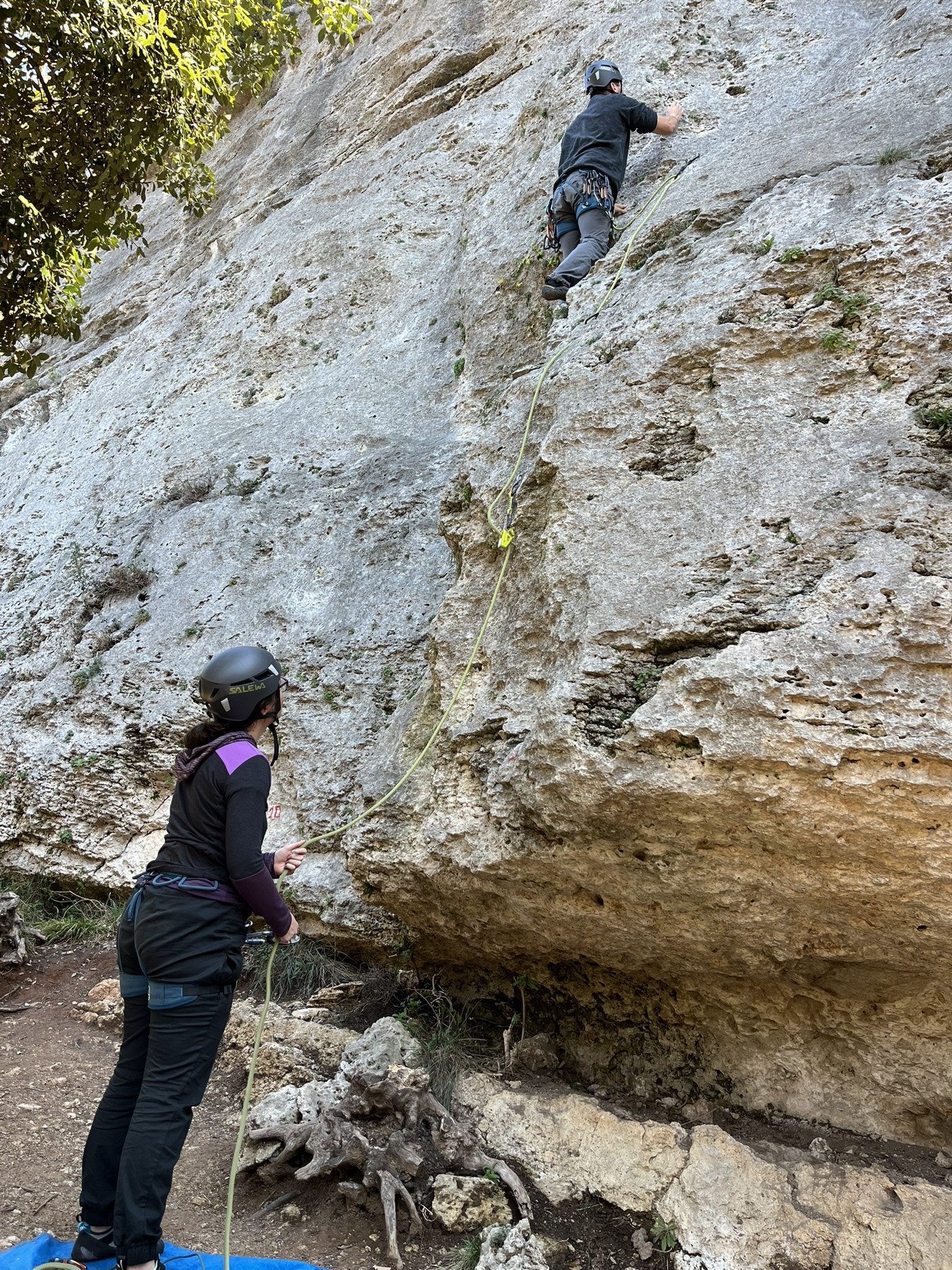 We start in the morning (around 9 am) at the course location. After a quick meet-and-greet, we’ll check the equipment together and go over the plan for the next few days. Then it’s off to the rock: you’ll learn the first basics of climbing and belaying and try your first top-rope routes.
